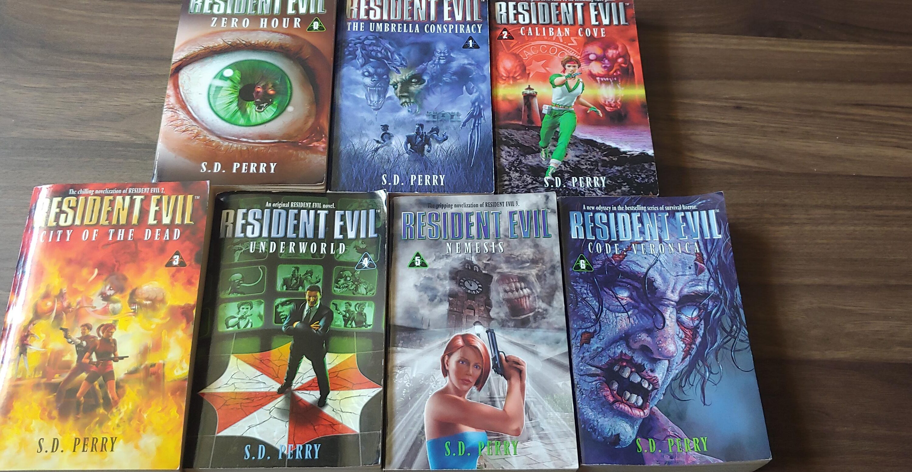 Τα βιβλία από τον κόσμο του Resident Evil είναι παραπάνω από αυτά του Dead Space, με τον αριθμό να αγγίζει τα επτά. Κάποια από αυτά είναι μεταφορά των games, κάποια είναι ολοκαίνουργιες ιστορίες που δεν έχουμε δει πουθενά, παρά μόνο στις σελίδες αυτών των βιβλίων. Εδώ υπάρχει και μία μεγάλη διαφορά μεταξύ των Dead Space και Resident Evil βιβλίων. Τα Resident Evil βιβλία είναι σε άλλο canon σε σχέση με τα games. Έχουν το δικό τους κόσμο, και οι γνωστοί μας από τα games χαρακτήρες έχουν άλλη ιστορία, παρελθόν και μέλλον. Πέντε από αυτά είναι μεταφορά πέντε κεφαλαίων από τα games, και δύο είναι ιστορίες που δεν έχουμε δει ποτέ.