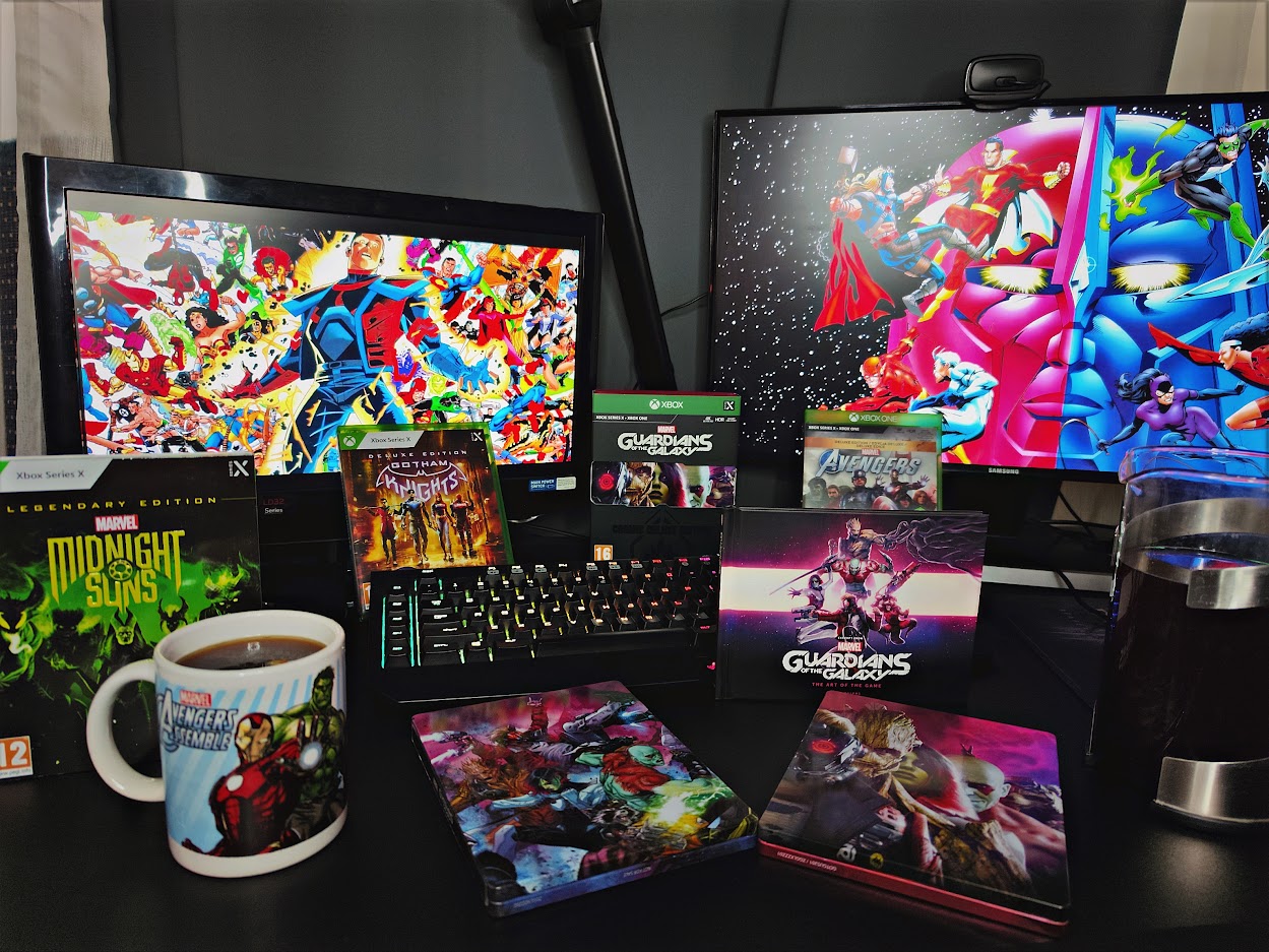 Μπορείς να πεις ότι η φωτογραφία σήμερα έχει σχέση με το θέμα. Φωτογραφία με ότι game από super heroes έχω εδώ μαζί μου. Στην Ελλάδα έχω και άλλα, αλλά δυστυχώ εδώ έχω στην κατοχή μου μόνο αυτά που έχω αγοράσει τα τελευταία χρόνια. Κάποια από αυτά ήταν πολύ καλά (βλ. Guardians of the Galaxy), κάποια OK (βλ. Gotham Knights), και τέλος κάποια ήταν κακά (βλ. Marvel’s Avengers). Για να μην το αδικήσω και το Marvel’s Midnight Suns θα το βάλω στα πολύ καλά.