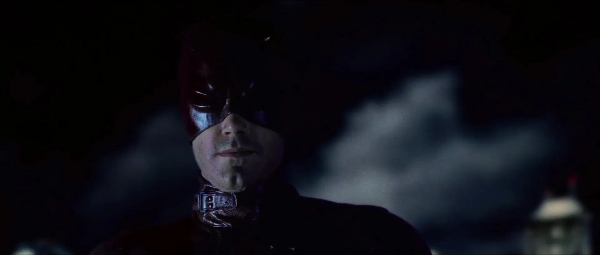 Ο Daredevil έχει κάτι σαν σόναρ/ραντάρ, αντί για όραση. Αν και η ταινία δεν σου δείχνει ακριβώς το ότι ο πρωταγωνιστής της μπορεί να “δει” παντού γύρω του αναπάσα στιγμή, σου περνάει πολύ καλά, τουλάχιστον, το πως βλέπει μπροστά του. Κάποιες φορές μέσω του ήχου κάποιες άλλες μέσω της όσφρησης. Όπως και να έχει και στις δύο περιπτώσεις η οπτικοποίηση είναι πολύ καλή.